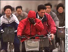 【明慧网2002年3月20日】据2002年3月18日美联社记者报导- 它钻进你鼻孔,藏在头发里,在牙缝间安营扎寨。嘿!它甚至潜入隐形眼镜后面。可千万别忘了,如果谁莽撞地打开窗户,它立刻就来。这就是北京的春天,沙尘暴季节的生活写照。