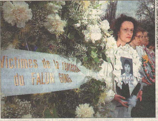 安德列.阿勒芒在报导中说,「停止屠杀」,700多法轮功精神运动的同情者在万国广场开始了为期3天的示威活动。他们来自世界各地,呼吁国际社会向北京施加压力停止这场镇压。他们同时希望前来参加此次周一开幕的在万国宫举行会议的人权委员会成员国能够为之所动。有关这篇报导的细节刊登在该报的第17版和第23版上。