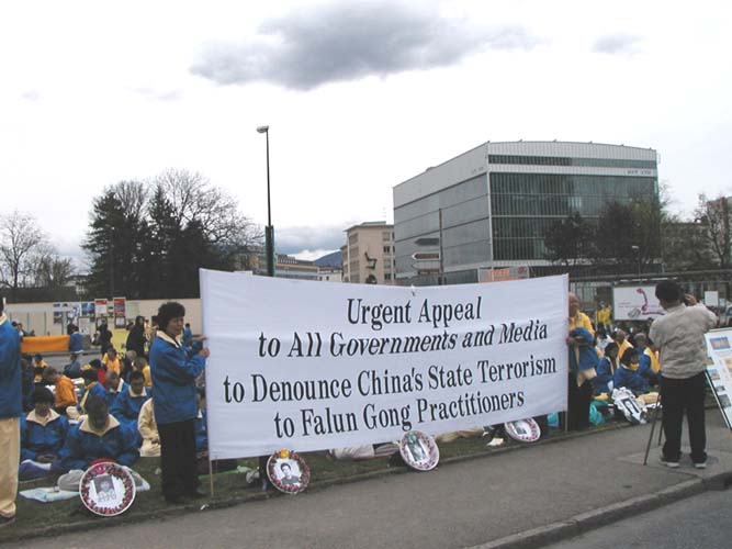 「停止屠杀!救援在中国受迫害的修炼者」,这是700多名法轮功修炼者在日内瓦联合国广场举行限期绝食请愿的目的。他们来自世界各地,呼吁国际社会向北京施加压力,停止这场镇压。