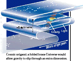 然而,科学家们的思想往往是超越人类现有知识的。他们认为,看不见、摸不着、现代科学仪器探测不到的,并不能证明不存在,也可能是因为这个仪器还不够先进。在现代物理学研究中,为了能够把万有引力和其它基本作用力统一起来,一些理论物理学家提出,我们这个宇宙可能只是多维空间的一个层面(膜)。基于这个“膜世界”的概念,科学家们试图把万有引力和其它基本作用力统一起来。权威科学杂志《自然》2001年6月28日(第411卷)报导了膜世界理论的研究。以下为原文的部份翻译。