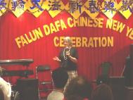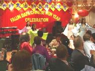 宴会期间好戏不断,与观众的欢声笑语融汇一起。应邀前来参加宴会的嘉宾,有澳洲联合组织执行董事(United Nation Association of Australia)、纽省政府官员、市长及多位市议员、律师、大学教授、艺术家、商业人士、多家媒体代表、澳洲国庆日委员会(AUSTRALIA DAY COUNCIL)纽省协调人、(ROTARY CLUB)澳洲分部蓝山区协调人及非政府组织(NGOS)协调人等百余人。他们与悉尼地区3百多位法轮功学员及家属一起共进晚宴,在品尝尤具中国南方特色之美味佳肴的同时,欣赏由法轮功学员自编、自导、自演的古典音乐、歌曲独唱、合唱、男女声二重唱、儿童舞蹈、法轮功五套功法示范、民族服装表演等多项文艺节目,精彩的表演展现了法轮功学员对美好事物,对真诚、善良、容忍,对生命需要“真善忍”的理解及实践。舞蹈学校的朋友也前来助兴,表演宫廷舞蹈。轻松自然、不拘一格的演出博得一阵阵的喝彩与掌声。