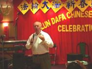 议员皮考克先生(Tom Peacock)亦代表民主党参议员巴特勒(Senator Andrew Bartlett, QLD),民主党移民事务部发言人及民主党新南威尔士州主席向与会者表示了问候,并重申民主党对法轮大法的支持,他说:“民主党致力于与你们一道,停止这场迫害,直到全世界所以人都可以自由选择自由实践他们的信仰。澳洲无论过去和将来,都需要文化的多元性及社会的和谐,如兄弟姐妹般。我希望藉此机会,向澳洲社会表达民主党对法轮大法在马年的祝愿,希望中国立即停止这场迫害。”