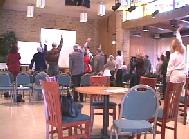 最有趣和感人的是,我们计划最后有十分钟的功法表演,没想到所有的人连同主持人都站了起来,随着录音机里传出的师父的口令,模仿着学员们的动作认真地学了起来。整个场面很是让人感动。让我们感到更应在法上精进,抓住一切讲清真相的机会,因为那么多生命都在等着法!