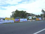 有一退休工人,在老年活动室玩,看见外面树上挂着"法轮大法好"条幅,他伸手就拽了下来,条幅一端有一块石头砸在脸上,当时就把鼻子上砸出一道口子,鲜血冒了出来,去医院缝了两针。别人看见了问怎么回事,他就说是拽大法条幅的事,别人就说:大法条幅你不能动,你这是遭报。从此以后他逢人便说:大法条幅不能动,我都遭报了。其他人也知道了,现在老年活动室外面的大法条幅谁也不揭了。