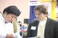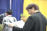 隔壁展位的一位工作人员对法轮功表现了浓厚的兴趣,他屡次走过来与学员交谈,了解学员的一些修炼情况,有时都顾不上照顾自己的展位了。学员长时间的打坐炼功使他佩服不已,他说真要好好了解一下法轮功。学员看他和大法有缘,便赠送大法书籍给他,他高兴地向学员道谢后满意而去。