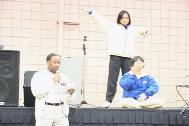 两天来弟子们协力配合,轮流进行功法演示及发放法轮功资料,希望不要落下一个有缘人,尤其一名老年大法弟子两天来一直不断地介绍法轮功,或进行功法表演,没有一刻停歇,仍是精神饱满。