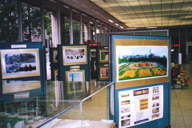 【明慧网2002年3月8日】二月二十五日至三月一日,法轮大法─正法之路大型图片在圣地亚哥市政府大厅正式展出。九十九幅大型彩色照片栩栩如生地描绘了法轮大法近十年所走过的正法道路,引来各界人士的普遍关注。图片展位于市政府大厅入门必经处,每天都引来市政府官员,工作人员及来访市政府的人员驻足在展板前。