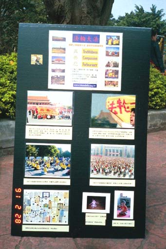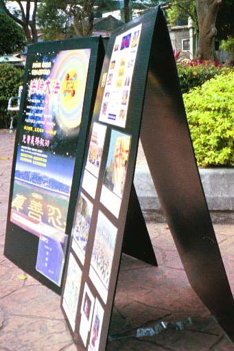 每天清晨,台湾各处的公园都有大法的炼功音乐在空中悠扬,大法展板的故事持续的上演着。希望这样美好的景象不久的将来也会在中国大陆各处呈现!