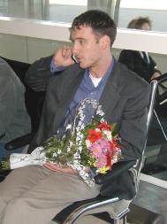 大纪元记者方林底特律3月30日报道:3月28日下午被北京当局在中关村抓捕的美国青年法轮功学员杰森.坡莫罗,今天上午11点30分到达美国底特律国际机场。底特律市和加拿大温莎市数十位法轮功学员到机场迎接杰森的归来。美联社记者对杰森进行了将近一个小时的电话采访。