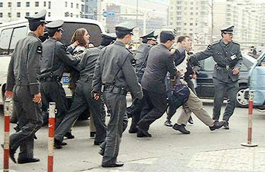 法轮大法信息中心表示,有15名警察将劳夫特斯和坡莫罗从北京闹市街道上拖走。他们是因为一位目击者在互联网上发布照片和情况介绍而得知两人的被捕情况的。