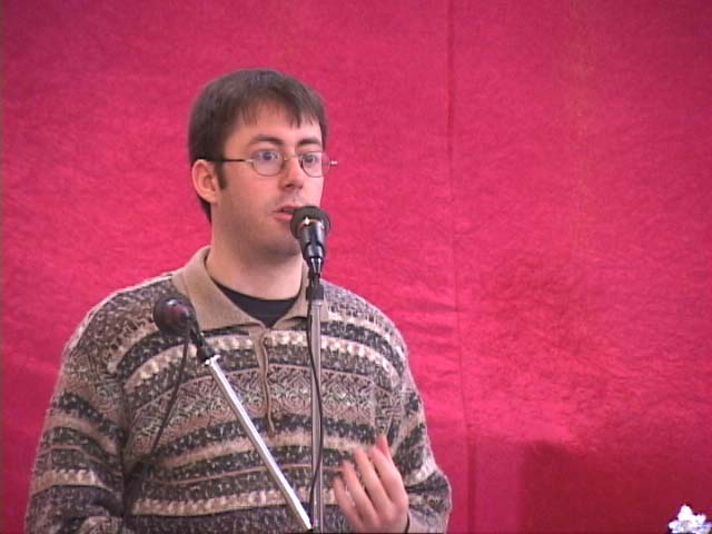 | 答谢会场一角 | 康蔻蒂大学学生会主席派翠思.布赖(Patrice Blais)发言 | 国际大赦代表卡洛.钱那女士发言 |