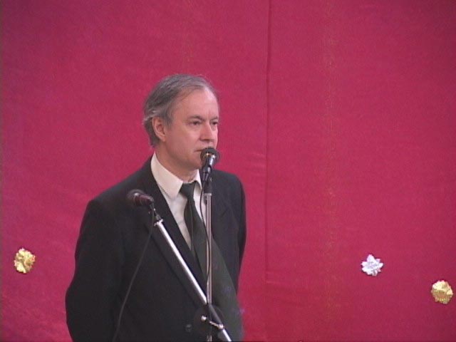 | 蒙特利尔大学教授赖蒙堂Lamontagne发言 | 考特勒(Irwen Cotler)先生与林慎立、李进宇在一起 | 大法弟子在表演舞蹈─普度 |