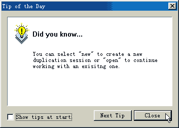 1、第一次运行会出现提示向导,我们可以关闭它,把“Show tips at start”前面的对号点击消失,然后选择“Close”: