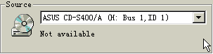 3、然后在左面的“Source”目标光盘中选择你的光驱,然后把你需要复制的VCD源盘放入光驱内,注意这里是光驱而不是刻录机,如果没有安装光驱也可以把VCD目标光盘放入刻录机内读取,并同时在左面的“Source”目标光盘中正确选择你的读取VCD目标光盘数据的刻录机: