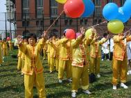 法轮功学员曾多次应邀参加此社区的公益活动。悠扬深邃的大法音乐,庄严优美的大法动作,纯正善良的大法弟子,醒目夺人的“真善忍”、“法轮大法好”横幅,热情洋溢的大法气球,给这一社区的人民留下了深刻的印象。“法轮大法”、“真善忍”开始扎根人们的心中。当邀请人在组委会上提出要邀请我们时,组委们都很高兴,一致通过提议,并决定给我们颁奖。