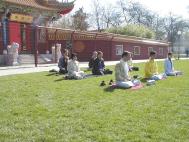 在苏黎世(Zuerich),电视台采访了无辜被关押在劳教所长达2年之久的法轮功学员林慎立先生。采访长达一个多小时。记者和摄影师的态度非常友好,一见面时就为林先生的释放表示庆幸。他们始终给予林先生充分的回答时间,不时表露体谅和同情之心。林先生在劳改营所遭受到的折磨与人权的剥夺使他们万分震惊。在整个采访过程中气氛祥和宁静。采访结束后,他们表示希望允许录下几个炼功片段,于是林先生和两位苏黎世的学员在户外草地上示范了佛展千手法。柔和的功法配上舒缓的炼功音乐深深打动了记者与摄影师。