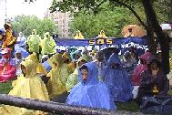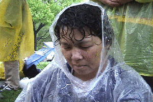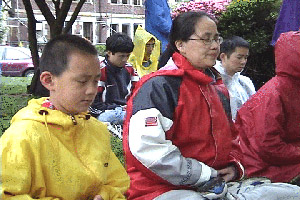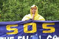 天阴沉沉的,终于,在午间,下起了雨,伴随着寒冷。大法弟子们,端坐不动,立掌除恶;