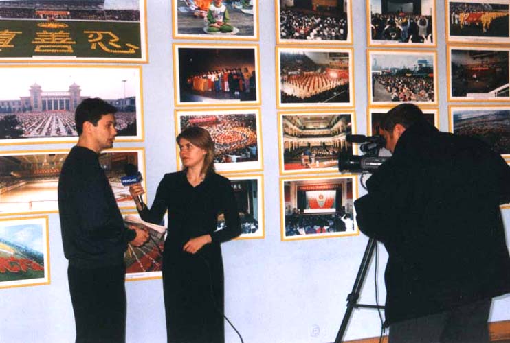 | 广播电视台记者正在采访 | 向电视台记者讲述关于“法轮大法”的事 | 第二天又有电视台来采访 |