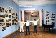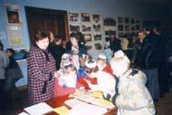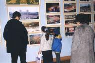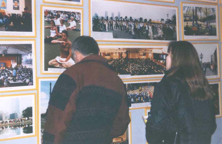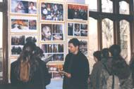 | 给参观者揭露江泽民集团迫害无辜的真相 | 年少的参观者正在了解什么是“法轮大法” | 人们观看图片 |