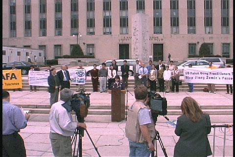 法轮功学员在新闻发布会上指出,“我们来到这里,是因为我们相信正义和真理。一群普普通通的人状告政府,在历史上从没有过先例。在目前的中国,有多少相信“真善忍”的无辜百姓被抓,被拘,被判刑,被残忍地杀害。在海内外,又有多少善良的人们被欺世的谎言和极权者的淫威所蒙蔽。在一些时候,一些地方,或许谎言和淫威可以逞凶一时。但是,我们相信正义和真理终将胜利。历史将成为我们的见证, 见证“真善忍”赋予我们的力量。”