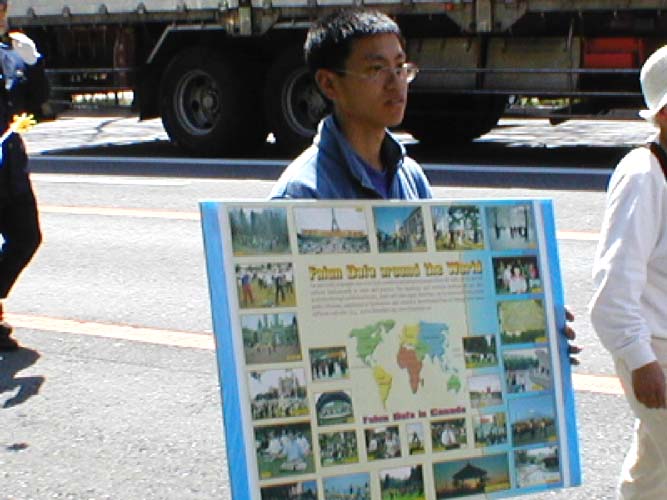这次大阪的游行是在星期五举行的,学员们克服工作上的困难,积极参加。在游行的过程中,午休的很多政府工作人员和公司职员都主动向我们索取材料,站在路边认真地看。在神户的中华街附近遇到了很多中国人,他们都非常希望了解法轮功,把各种中文材料各要一套才满意地离开。