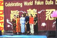 庆祝活动前,全体同修双手合十向给予我们全新生命,慈悲伟大的师父致以崇高的敬意; 向为了坚持真、善、忍的信仰而献出生命的国内409位同修,以及那些至今仍未知姓名的被残害致死的同修致以深切的悼念和崇高的敬意;向仍为坚持真理, 不屈不挠顽强与邪恶势力抗争的国内同修们及那些遭受无端牵连,在生活上、精神上、受到不同程度创伤的同修家属和他们的亲朋好友致以深切的问候;向近3年来不断呼吁中国政府改善人权,停止对法轮功迫害,与法轮功修炼者共同分忧的新西兰政府表示衷心的感谢;向在各方面给予法轮功支持,帮助,关心的组织和团体,善良的新西兰人民以及其它种族的朋友致以最诚挚的感谢。