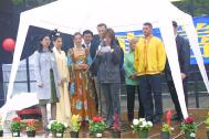 这次庆祝活动也遇到了邪恶的干扰。在开始后的数小时内,天空曾数度降雨,有时雨势很猛。学员们多次持续发出强大的正念,清除破坏大法的一切邪恶,雨在新闻发布会结束,大型文艺演出之前嘎然停止,使文艺节目表演、工艺品展示等都得以如期举行。事后,有弟子互相交流说,发正念时只是一心坚定除恶,并不因这个空间中是否雨停而受影响,无论邪恶聚集了多少力量,我们每发一次正念就是对它们的致命打击。邪恶终将被除尽。在阵阵风雨中,有开天目的弟子看到,这个空间中虽然是风雨交加,而在另外空间的景象,却是无比殊胜,壮观。