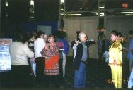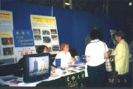 就这样,从早上10点博览会开始到下午4点结束,学员们持续不断地轮流进行功法演示:整齐鲜艳的黄底红边练功服,宁静柔和的大法音乐,优美平和的功法演示在整个博览会大厅里构成了一道独特的风景线。其他学员则在宽敞的展位前面义务教功,或在第三个展位前用电视和传单向过往的有缘人传递大法真相和信息。天象也许真到了这一步了:川流不息的人流一批一批地为大法祥和慈悲的能量场所吸引,几乎每一个经过的人,不论是他们的肤色是黄是白是黑,是老是少,是男是女,都在我们的展位前驻步停留。不少人情不自禁地跟着学员学起了功。展位里的学员认真地一遍接着一遍演示五套功法,展位前的功友耐心细致几乎是一刻不停地教功。特别是一位年纪大的功友,我们叫她李阿姨,她那颗为生命的未来着想的纯善的慈悲心使得她用最简单的英语掺和着中文,也能自如地与有缘人交流并教功。