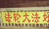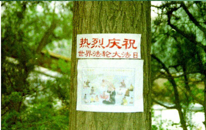 图片报道:大陆北方某市原炼功点出现庆祝世界大法日横幅标语