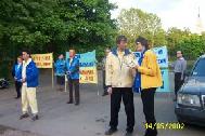 活动开始前,使馆上空聚集一大片乌云,大有风雨欲来之势。大法弟子坚定地齐发正念,铲除邪恶!约半个小时后乌云散去,天空晴朗。(英文版:https://www.clearwisdom.net/emh/articles/2002/5/16/22117.html)