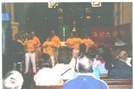 中场休息时,大法弟子及时地分发传单,有很多人主动咨询并表示敬意;有的表示想要学炼法轮功。有的则说:“你们表演的非常好! 非常感谢能有机会认识你们这群人”。听到这些称赞,大法弟子都为之感动。不仅仅是为了演出的成功,更是为那些众生得救有望而欣慰。