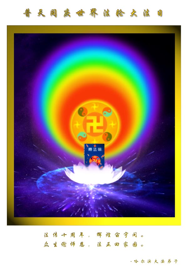 美术设计一款:“庆祝法轮大法洪传十周年”