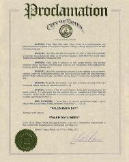 【明慧网2002年5月19日】2002年5月11日,佛罗里达州坦帕市市长迪克.格瑞克(Dick A. Greco)签署褒奖状,褒奖法轮大法对社区的杰出贡献并宣布5月13日为“法轮大法日”及5月12日-5月19日为“法轮大法周”。5月16日晚6:30,在例行的市政会议,坦帕市市议会主席莫兰达先生代表坦帕市市长向法轮大法颁发了褒奖状,学员代表做了答谢致词,向在场观众介绍了法轮大法并呼吁关注发生在中国的对法轮功的镇压。地方电视台现场直播了整个过程。