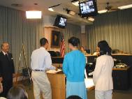 | 市政会议现场 | 学员代表致词感谢坦帕市市长和市议会 |