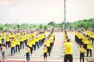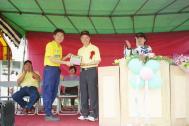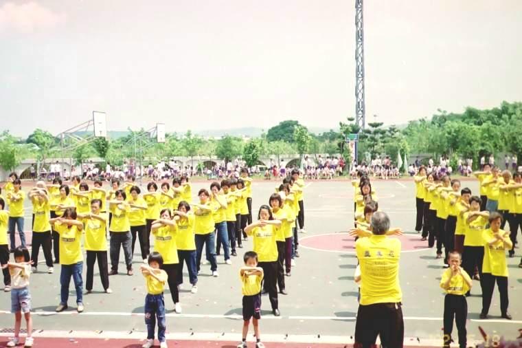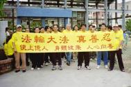 先前因连续两日大雨,部份功友还担心今日仍有大雨,一大早却天清气爽,大大鼓舞了我们。许多功友甚至扶老携幼一同来参加,因此在现场看到了许多身着大法黄衫的小弟子;当10点20分排在第三个社区节目表演的我们列队进场时,只听到许多家长和学校的同学惊呼:有那么多小朋友炼功呢!在负责旁白的功友简明的介绍了法轮功的特点及带给人们身心健康、道德向上的好处后,特别向现场的来宾、同学宣布:每日上午5点半至6点半在该校也有晨炼,欢迎来宾及同学来参加。当功法表演结束时,学校还颁发感谢状,感谢我们参与他们的活动。