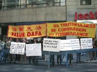 在刚刚过去的一周里,由200多人组成的游行队伍在曼哈顿庆祝了法轮功传播十周年纪念日,五彩缤纷的游行队伍由汽球、中国传统舞蹈和音乐组成。然而,当游行队伍经过中国城时,遇上了一群不速之客,这些人叫喊着由侨报和星岛日报的文章中使用的诽谤性口号,他们的喊叫及姿态如此恶劣,以致于不得不由一队警察来护卫着法轮功的游行队伍,而且我们不得不改变了预期的行走路线。在这种情况下,那群暴徒仍然追赶了几个街区,继续对我们大喊大叫。当我们在附近的公园平静地炼功时,他们还在咒骂我们,尽管当时有警察组成的人墙卫护着法轮功的炼功场地。