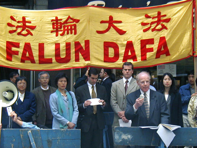 我们是这一案件的起诉人,来自各行各业,有医学研究工作者、医生、商人,也有家庭主妇、时装设计师、图书管理员、大学教授、信息技术专家等等。我们今天来到这里想通过这一诉讼案来停止在纽约市发生的对法轮功仇恨的传播。它在我们的城市不应有市场,在我们的社区及我们的生活中都不应有立足之地。
