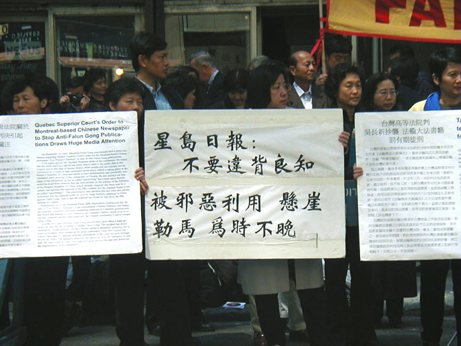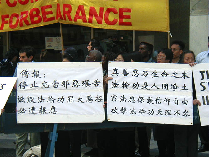 声明还说,在过去的一年里,由这两家报纸发表的一系列诽谤性文章中,将谎言、毁誉性的声明及诽谤性标志编织到文章里,用以煽动纽约居民对法轮功学员的仇恨和不信任。由这些文章引起的结果是客观存在的,他们已经对我们的生活不同的方面造成了损害,包括我们的工作单位、我们的社区、我们的朋友交际圈甚至我们的家庭。