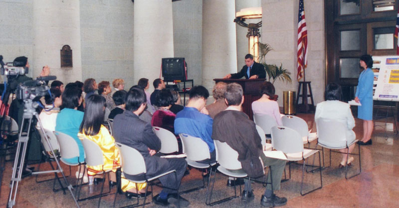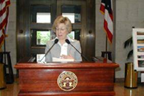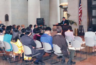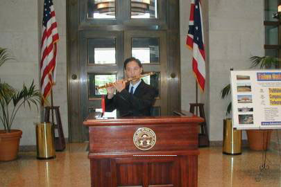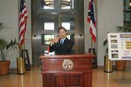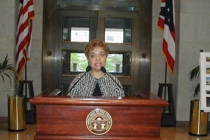 | 法轮功学员、俄亥俄州立大学经济系教授Lucia Dunn博士代表法轮功学员致辞 | 哥仑布市议会议员Charleta Tavares 女士致辞并参加了整个庆祝活动 | 美国国会议员Deborah Pryce先生的助理McSeveney 先生到会祝贺 |