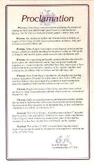 鉴于,自从法轮功传出以来,他已经打动了55个国家千百万人民的心;法轮功于1996年首次传入纽约,本地的学员们已经举办了许多免费讲座班,向社区介绍修炼此功法的益处;并且
