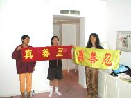 25日中午,他们把我们带到机场,怕我们向旅客说明真相,不让我们下车,把一切手续办好后,没有走大厅,而是从另外没人的通道将我们送上飞机,最后我们也没见到日本使馆的人员。这些警察也是受蒙骗的,当我们告诉他们在国外法轮功是合法的,可以游行,并得到警察的保护,在国际上的有很高的声誉,他们不相信。