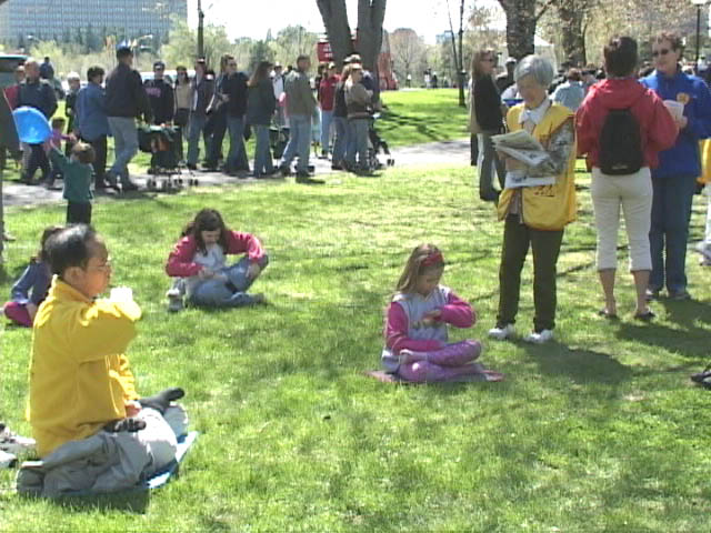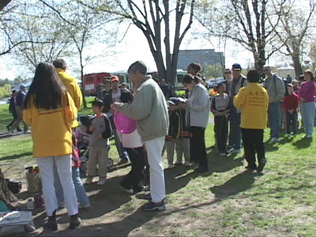 5月11日,时值渥太华“郁金香节”,Dows Lake公园的中外游客逾万。渥太华法轮
