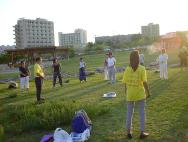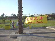 我们在海边炼功洪法时,很多当地人都被我们黄色的T恤衫伴随着优美的大法音乐所吸引。他们不断地索取法轮大法的资料并询问了很多问题。有趣的是一个十八九岁的金发女孩子一直在注视我们。在拿到大法资料后她说我们学员身上有光圈,有能量。使她感到非常舒服美妙。她想马上就学法轮功。学员炼功,她就跟着学;学员发资料,她就在旁边等着。一直到洪法结束了,我们和她告别时,她才依依不舍地离去。真是有缘人呐!