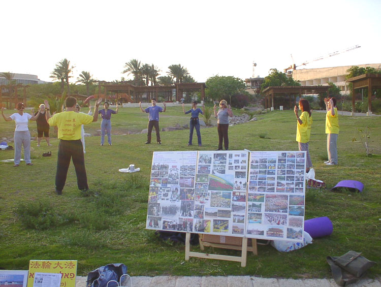 当放完“天安门自焚疑案”,“4.25中南海事件释疑”和“对法轮功的人权侵犯”等录像后,一个中国工人告诉我:我早就知道法轮功好,因为我姐姐以前就炼,现在也在炼。还说他过去看过几页,知道法轮功是教人做好人的。又问我们是否有书。当他得到了一本中文的《法轮功》时,非常高兴,说这次一定要好好读一读。