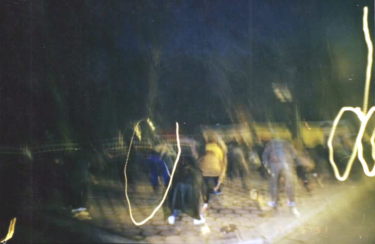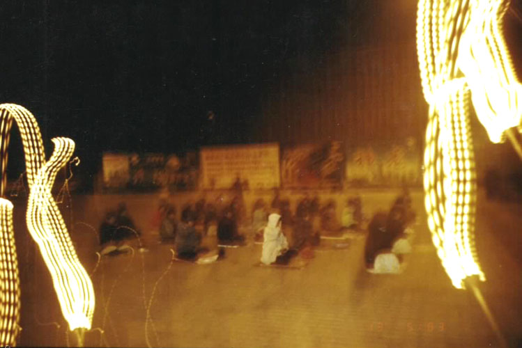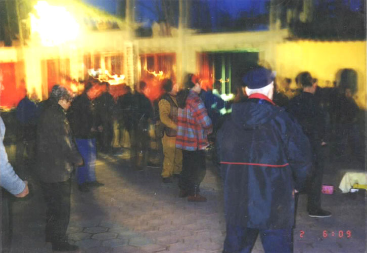 | 南京市政府门前炼功点(1999年3月1日5点53分) | 南京市政府门前炼功点旁(1999年3月4日5点29分) |