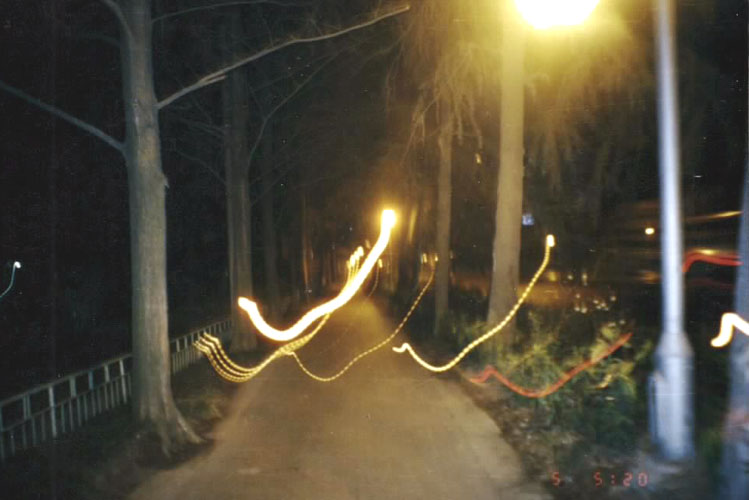 | 南京市,学员在寻找炼功点的路上(1999年3月1日) | 湖北汉口,徐洲江边炼功点(1999年3月10日早6点5分) |