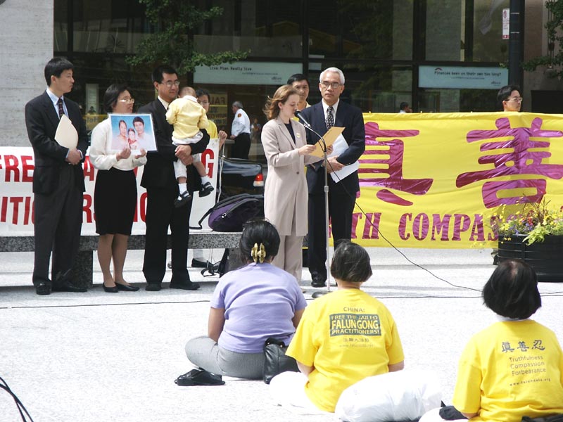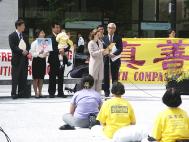 上午10点发布会准时开始,会上宣读了美国参议员理查德·德本(Richard J. Durbin),众议员Janice D. Schakowskyj发来的贺信。理查德·德本在贺信中说:“法轮功值得我们所有人的支持,不论在中国还是在美国。(在中国)经历了几年的受压迫和令人发指的残暴,法轮功始终遵循着真善忍的宗旨,这确实是对你们信仰的证实。”德本还说:“你们所承受的迫害确实不仅只是中国的事情,而且也是全人类的事情。”伊利诺州和密歇根州议员也纷纷发来贺信。会上还宣读了最近伊利诺州刚刚通过的谴责中国政府对法轮功迫害的提案。被拒绝入境冰岛的学员及被拒绝护照延期的学员也分别发了言。这些事件充分说明江泽民政府已将对法轮功学员的迫害延伸至海外。另外,中国协和医科大学助理研究员、法轮功学员林澄涛的校友介绍了中国对该学员的迫害情况,呼吁世界所有善良的人们让中国政府知道:迫害必须立刻停止。发布会上,一些中外媒体前来采访。