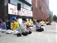 15日早晨九时,来自美洲地区及美国各地的学员聚集到戴利广场集体炼功,发正念,并举行新闻发布会。