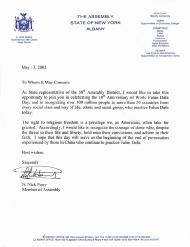作为第58选区的州代表,我愿意藉此机会与你们一道共同庆祝法轮大法洪传世界十周年,并且赞誉遍布50多个国家、来自社会各阶层、各行业、各文化和种族背景的逾亿名法轮大法修炼者。