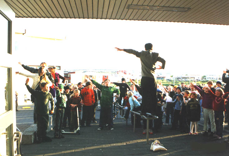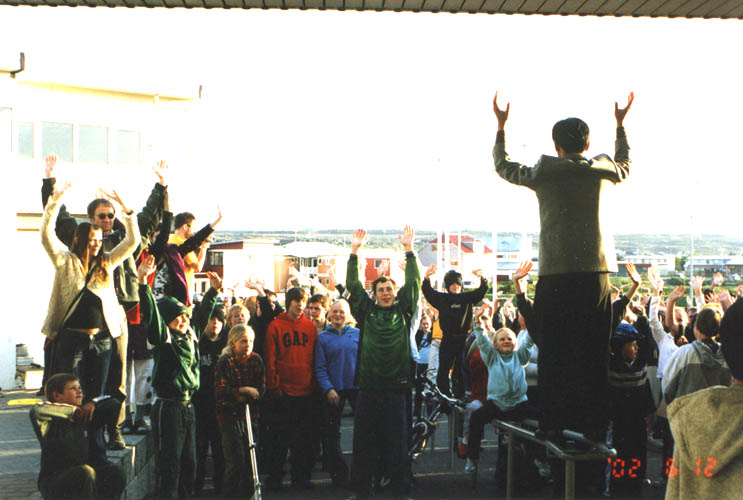 | 自发赶来声援被扣留的大法弟子的冰岛民众,在弟子的带领下,学起功来,秩序井然,警察如释重负,非常信任我们大法弟子。 | |
